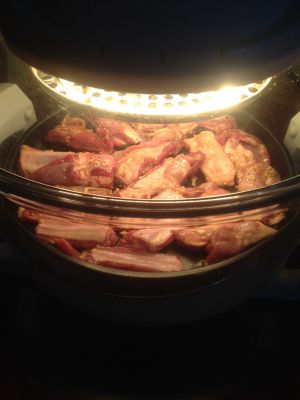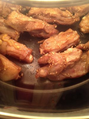 羊排洗净控出水分,加入以上调料,和洋葱,带一次性手套,抓拌均匀。