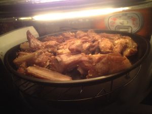 烤箱提前230度预热好,将羊排放在下层,烘烤约20分钟。