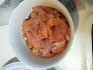 猪肉切片,加盐,生抽腌一会,让肉入味