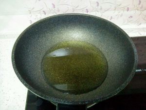 油锅烧热,待油泡散去,关掉煤气,稍放置降温