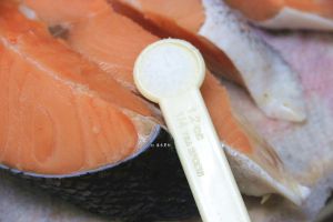 取1/4小勺盐均匀抹于鱼排,放置一会。