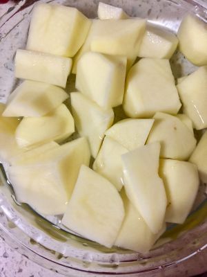 土豆去皮切块,放入水中浸泡。