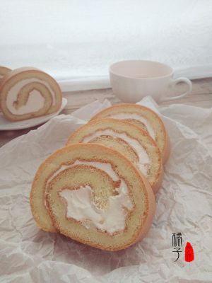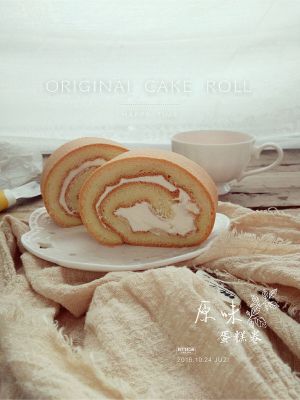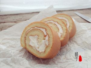 面糊倒进烤盘,将大气泡震出,抹平表面,放入上下火预热180度的烤箱,烤18~20分钟即可,具体时间以自家烤箱脾气为准,只要蛋糕表面均匀上色,基本蛋糕就好了,也可用牙签在蛋糕四角戳一个洞,没有面湖带出来就熟了。 出炉后的蛋糕从30公分高处垂直摔下,以排出热气。 蛋糕可做正卷或反卷,做正卷的话,出炉后要即刻将蛋糕翻转,撕去底部烘烤纸后再把蛋糕翻转,正面朝上,用一张烘烤纸虚盖蛋糕,以避免蛋糕表面干裂。 蛋糕在晾凉过程中,奶油加砂糖打至可抹面的硬度,马上抹至蛋糕表面,卷紧,放入冷藏,定型半小时即可。半小时的时间,蛋糕已定好型,且能吃出鸡蛋稍奶油最浓郁的香味,蛋糕体也仍蓬松,口感是最佳的。冷藏过久,风味就大打折扣了。