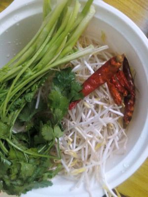 香菜洋葱豆芽处理好备用,(辣椒大家可以不放)