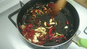 找个干净锅放油,放葱姜蒜辣椒干,炒几下放豆瓣酱,适量的糖(不喜欢吃甜的,可以不放)然后把自己喜欢的配菜放一起干煸下,在加适量的水煮5分钟(不易熟的菜可以先炒在放水煮,一定要加水,可以多点,当汤汁)