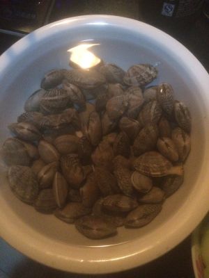 花蛤先用盐水泡上一个小时,