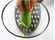 西葫芦洗净,用擦丝器擦成细丝,放入容器,加2克盐腌10分钟至渗出菜汁儿,将胡萝卜也擦成丝状,葱切末,都放入西葫芦中。