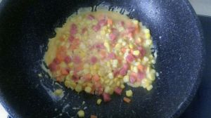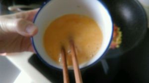 加入葱花、鸡蛋、盐、鸡粉、五香粉。用量如上述。