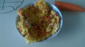 土豆胡萝卜擦丝,打入鸡蛋,混合所有粉类