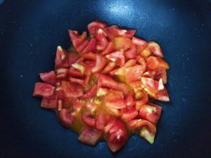 油热入番茄(有蒜的朋友油热先放蒜炒出香味再放番茄)