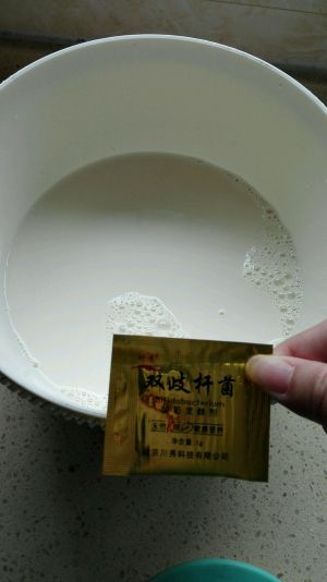 倒入剩余两袋牛奶,继续搅拌。保证菌粉不沾容器壁,与牛奶充分融合。