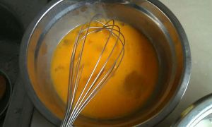全蛋2个和蛋黄2个打散,打散就好不能打发哦