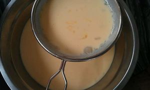 蛋奶液过筛后就得到更加细滑的液体了