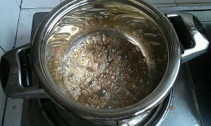 放到电磁炉上煮沸,煮到焦化,呈红褐色关火