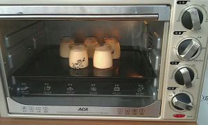 烤箱预热160度,布丁放入烤盆中,并在烤盆中注入热水,下层,40分钟