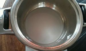 奶锅里倒入热水和细砂糖各50克