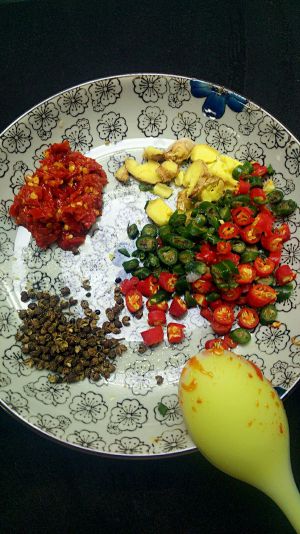 准备好配料,大蒜忘记放一起了。小米椒也可以任意用其中之一。