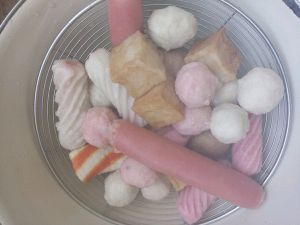 然后将所有蔬菜焯水煮之8分熟 。鱿鱼也焯水