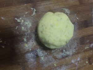 压碎煮熟的土豆 加入土豆泥量三分之一的淀粉 少许胡椒 盐