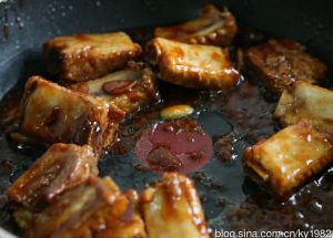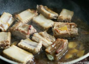 加1大勺黄酒、2大勺米醋、3大勺白糖、4大勺生抽、5大勺水,佐料刚刚及齐排骨就可以;旺火烧滚,转文火焖30分钟左右;