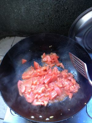 热油锅中下番茄,进锅时加些盐,方便熬汁,大火熬至粘稠状,不要加水