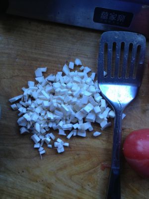 洋葱、胡萝卜、杏鲍菇切丁,为了颜色好看我也切了黄瓜丁。