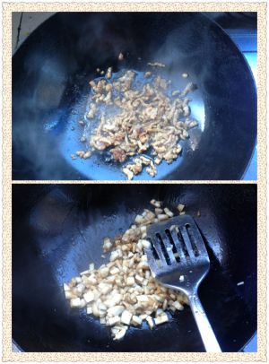 将肉糜杏鲍菇放入炒质好的番茄酱中,拌匀