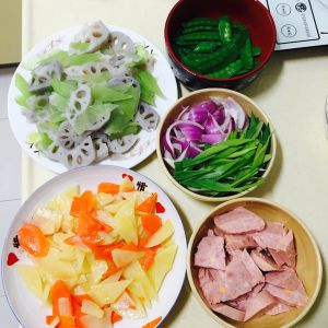 莴笋 莲藕 荷兰豆 「过水」,土豆 胡萝卜 「过油」