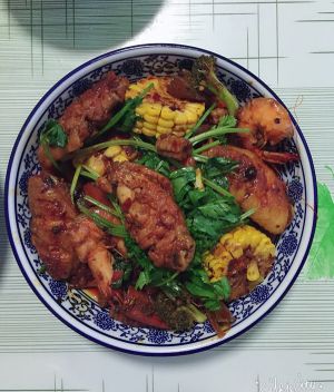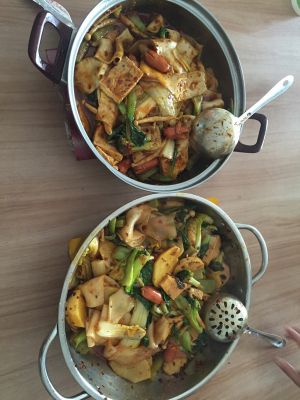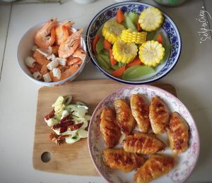 酱料:我没有用买的那种麻辣香锅的调料,老妈自制的酱料两勺,放入盐,味精,少许橄榄油