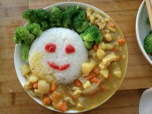 把咖喱鸡盛至米饭周围一圈,大功告成拉。