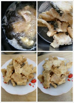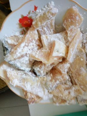 鱼块炸好后,再复炸下,比较香脆,再撒上椒盐成了!