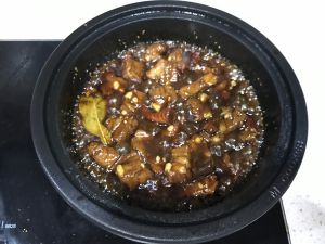 4、小火焖煮约一个小时,然后大火收汁,起锅时再淋点香醋即可。