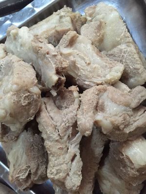 煮熟的排骨加入葱姜大料,酱油等调料,用高压锅煮15分钟后(热水下锅),捞出控干水备用。在煮排骨的时间里准备一个碗汁,一匙料酒,二匙酱油,三匙醋,四匙糖,排骨煮好后再加适量骨头汤到碗汁里