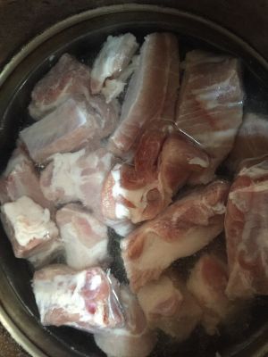 排骨洗干净后,凉水下锅煮熟去血水