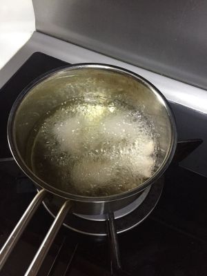 将淀粉10克、水80克调成水淀粉,倒入锅中 一边煮一边不停地搅拌,煮开成浓稠的芡汁;