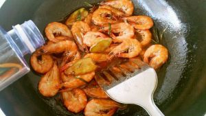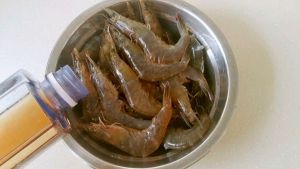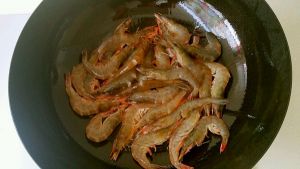 处理好的鲜虾放入锅中。