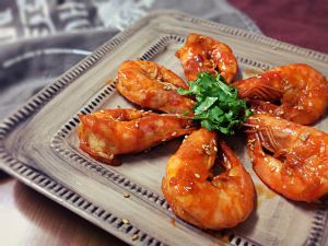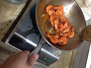 最后将炸好的大虾放入锅中,然后将调好的酱汁倒入锅中,等汤汁变少虾熟透就可以出锅了。。。