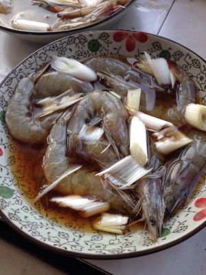 虾去虾线,料酒➕盐➕大葱段➕姜腌制一小时