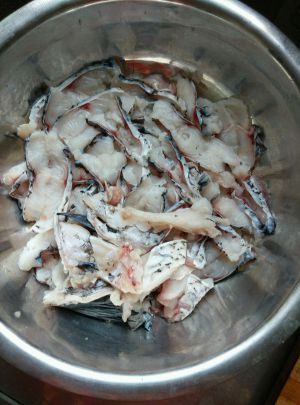 腌制鱼片的空隙咱们把剩的鱼骨切成大小合适的块儿备用