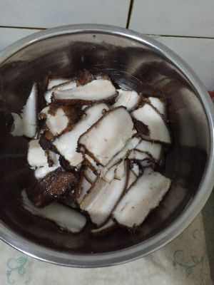 1. 把梅干菜用清水浸泡四至五小时洗净