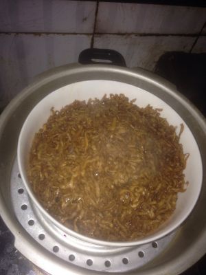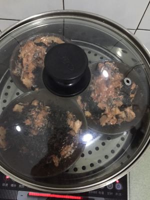 放入梅干菜上锅蒸1小时后再小火蒸1小时