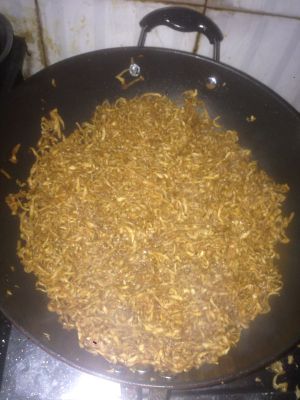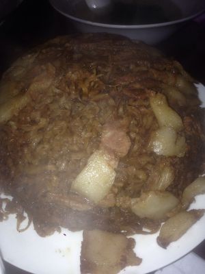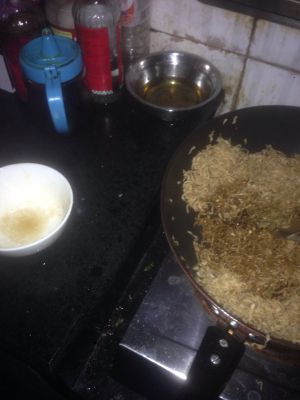油还是煎肉的油 倒完酱汁 用装酱汁的小碗弄半碗水 炒炒炒