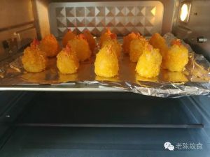 170~180度上下火预热烤箱5分钟后,将虾球放置烤箱中层烤制20分钟完成(有人又在叫唤我没有烤箱了,没事下面有油炸版的)