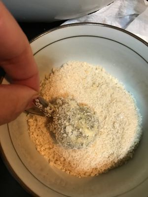 鸡肉洗净剁成泥,加入鲜虾剁碎,不用太烂,有颗粒增加口感。