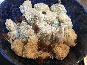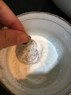 将土豆蒸熟,碾压成泥状,包裹虾成球状
