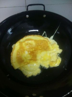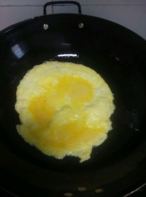 锅里放油,烧热后放蛋液,大火炒制金黄立刻出锅