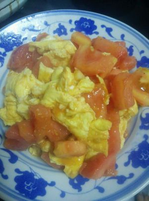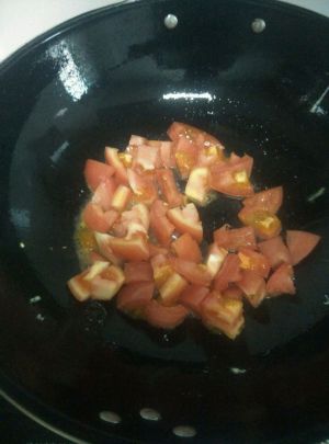 西红柿切小块(不要太大不好吃)鸡蛋打散备用