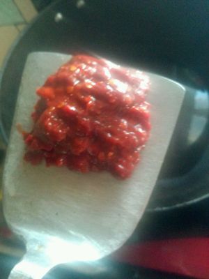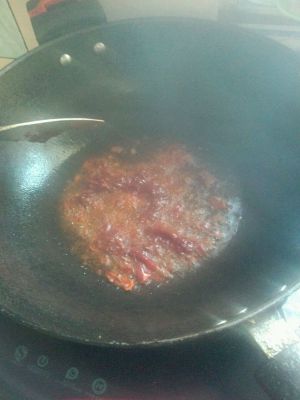 然后准备郫县豆瓣酱,我喜欢吃辣的,就多放了些,大家可以根据自己喜欢的口味添加