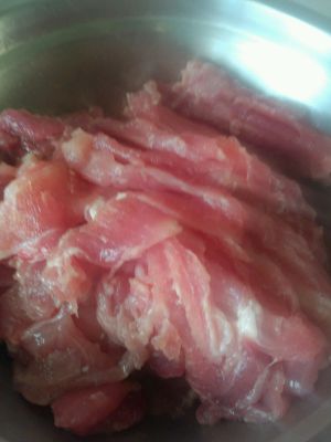 把肉切成片,薄一些,建议大家稍微冷冻的时候切,那样会好切
