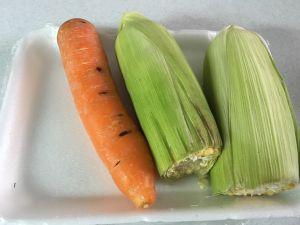 甜玉米洗干净切小段,胡萝卜去皮切滚刀块